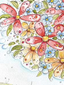 Dieses Aquarell erzählt von Vertrauen. Von der Fähigkeit, innezuhalten und den eigenen inneren Bildern Raum zu geben. Mit jedem Pinselstrich entstehen Blüten voller Wärme, Leichtigkeit und Hoffnung. Spielerisch verbinden sich weiche Farbverläufe, feine Details und lebendige Sprenkel zu einer Szene, die Herz und Fantasie gleichermaßen berührt.